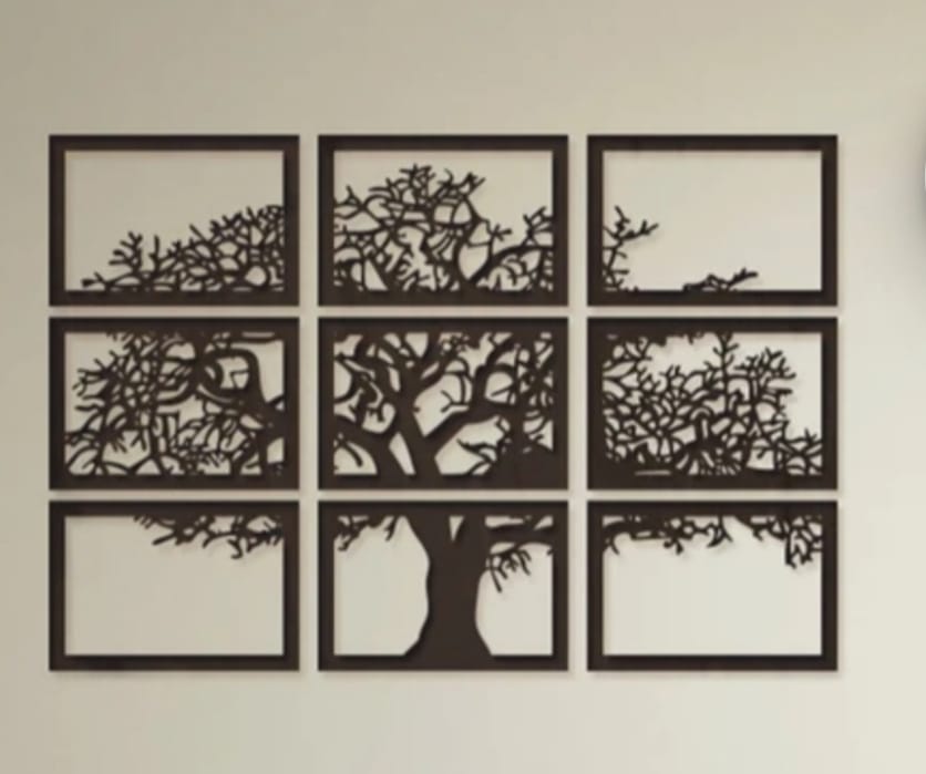 Multilayer wooden framework with tree divided into 9 quadrants (150 x 90 cm, thickness 6mm)