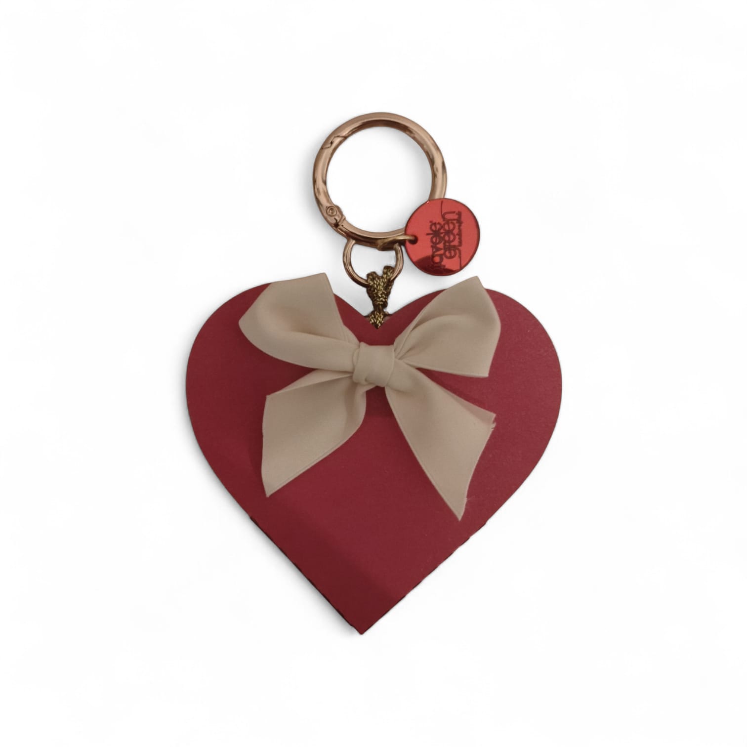 Handcrafted wood and plexiglass keychain with red hearts that can be personalized with initials upon request. Gift idea to celebrate Mother’s Day. In gift box.